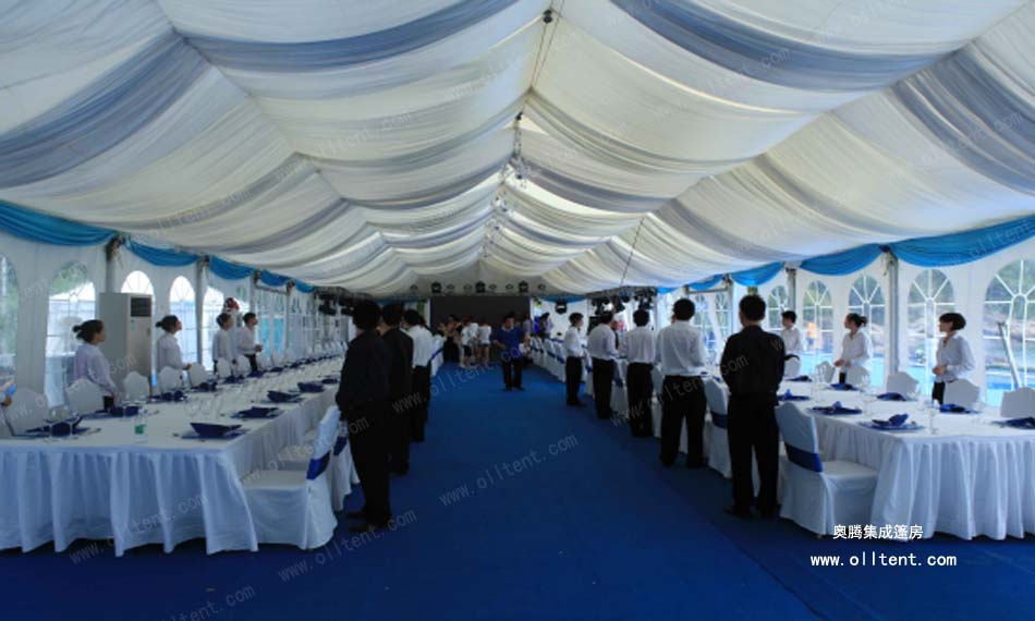 歐式帳篷可以找奧騰篷房公司,奧騰還能同時(shí)提供地毯和布幔(肯定也會(huì)負(fù)責(zé)運(yùn)送搭建拆卸)。搭建的時(shí)候一定千萬(wàn)要注意安全!所有支架一定要檢查有沒(méi)有固定牢。