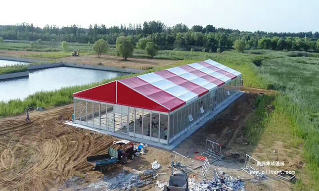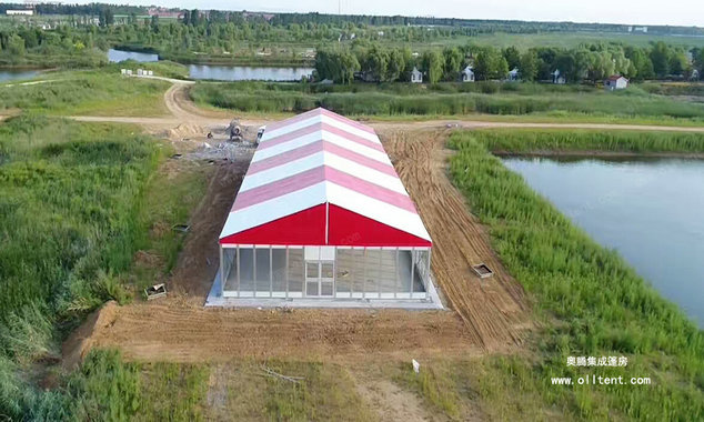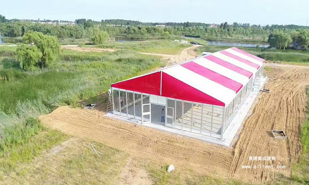 奧騰大型篷房可滿足于各種不同的活動需要。超大凈跨度:10-60米,模塊化結構,搭建工期短,易于組裝和拆卸。大型篷房外形優雅、搭建靈活、安全環保、防雨、防曬、防霉、阻燃,可抗8-10級大風,廣泛應用于各類戶外臨時性活動,作為臨時或長期建筑都是很好的選擇。