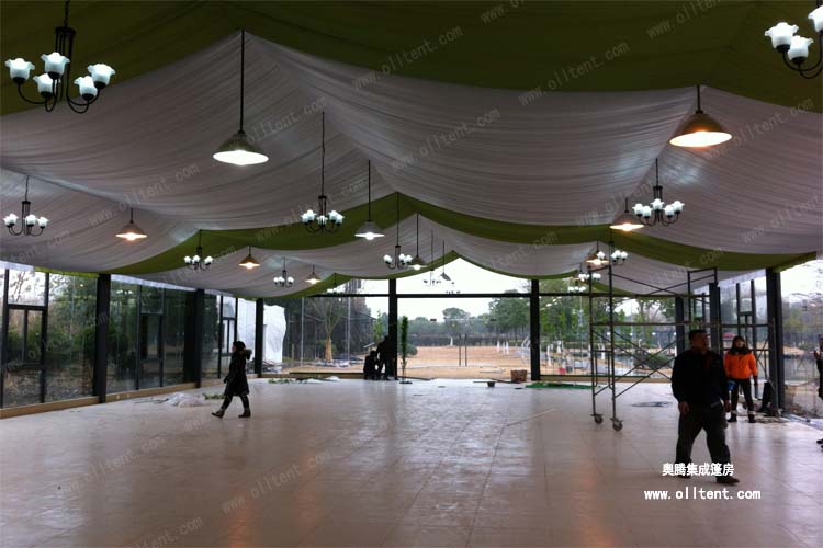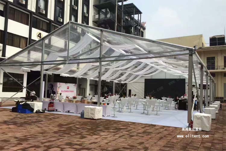 奧騰大型篷房可滿足于各種不同的活動需要。超大凈跨度:10-60米,模塊化結構,搭建工期短,易于組裝和拆卸。大型篷房外形優雅、搭建靈活、安全環保、防雨、防曬、防霉、阻燃,可抗8-10級大風,廣泛應用于各類戶外臨時性活動,作為臨時或長期建筑都是很好的選擇。