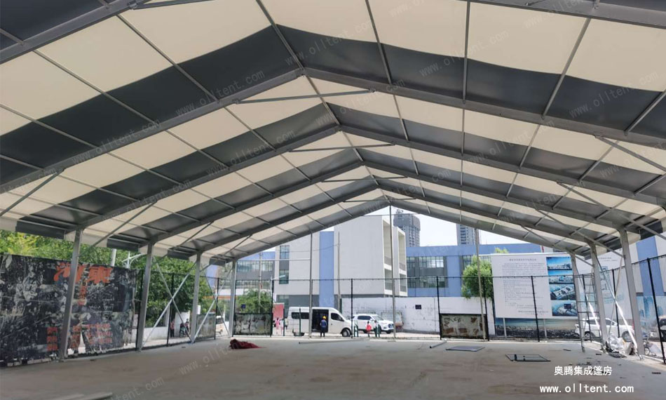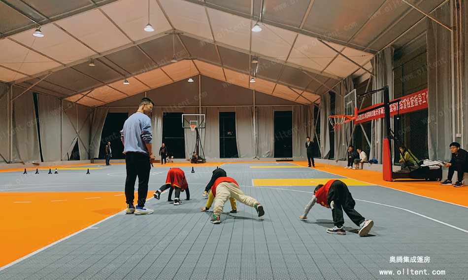 奧騰篷房可以打造各式各樣的籃球場館篷房,跨度從3米至60米,高度從3米到8米,在籃球場館篷房設計外觀上更是多樣化:球形、人字形、弧形等。完全滿足網球、足球、羽毛球、游泳等體育活動對場館的需求。
